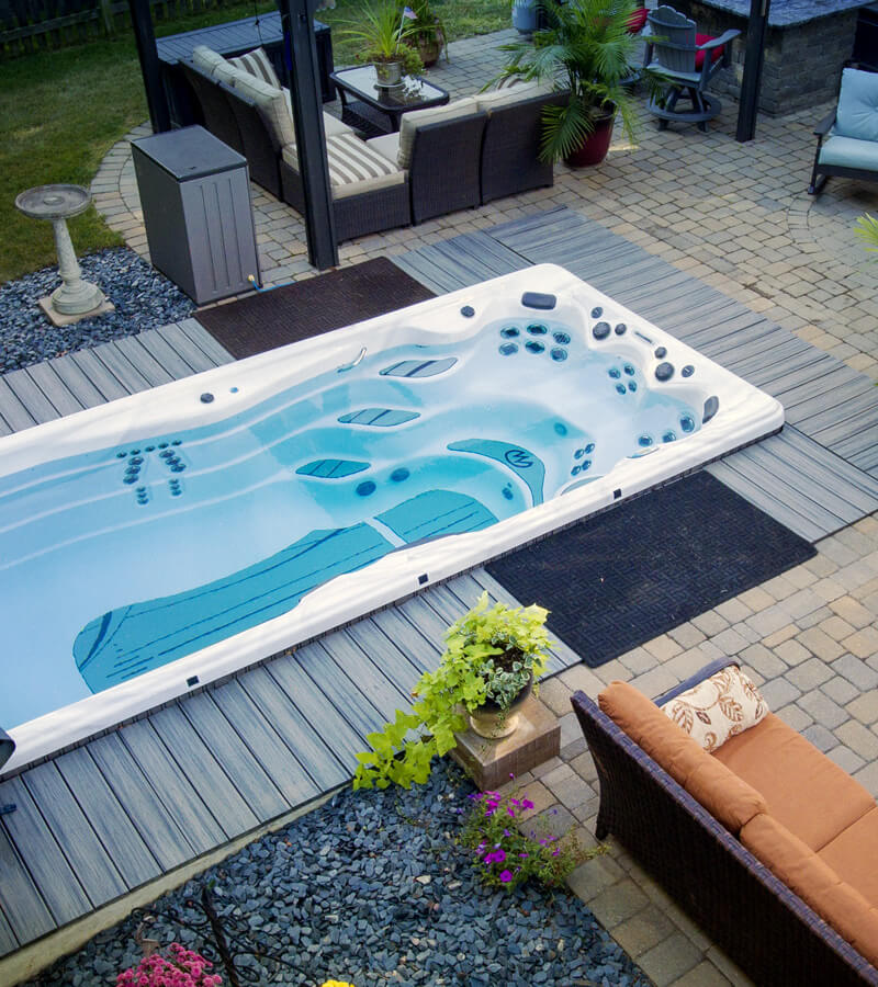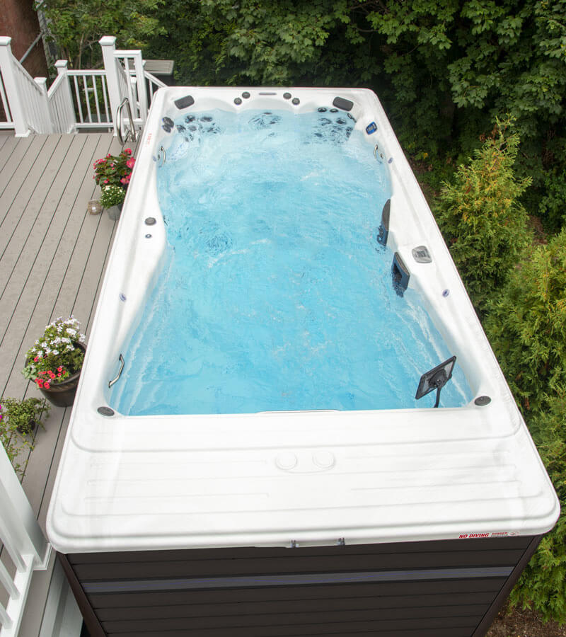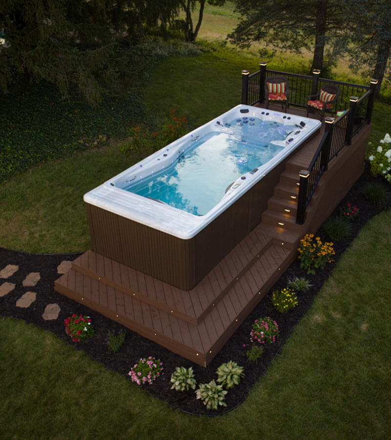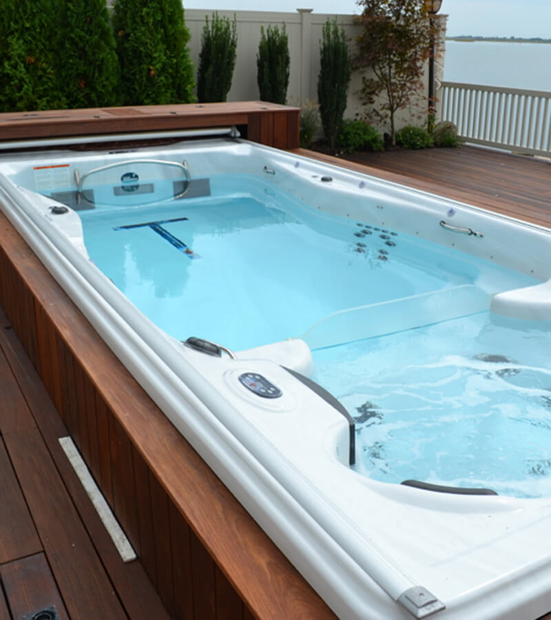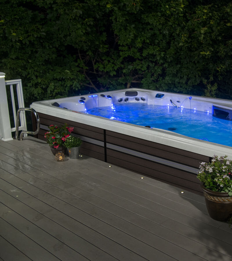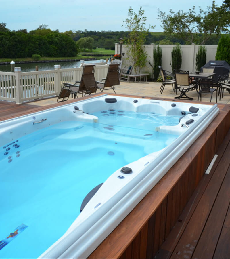 Master Spas Swim Spas are designed for inside or outside, year-round enjoyment and can be installed above ground, partially recessed or fully recessed. When choosing the location for your swim spa, consider how you will use your swim spa and what location will make it the most accessible and enjoyable for you and your family.